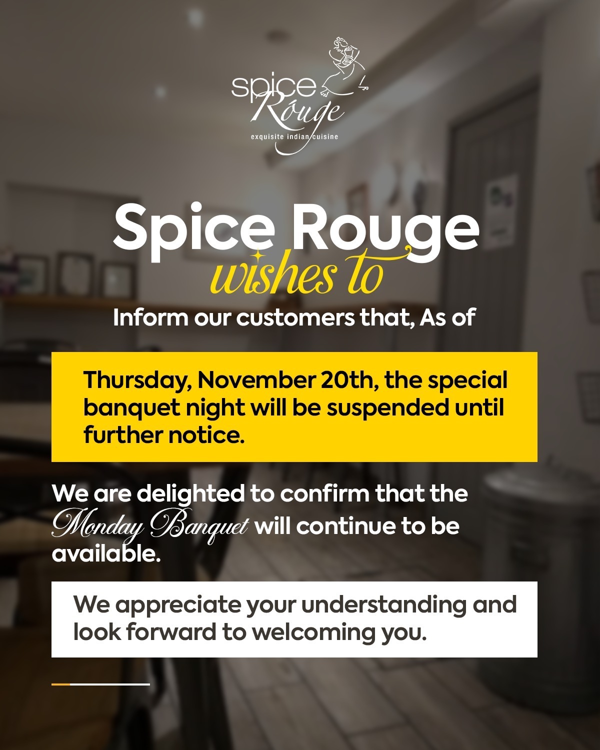 We are proud to present the finest chef in the culinary world. The management takes great care to ensure that our diners are happy with the food. We pride ourselves on our customer service and quality of food. SPICE ROUGE uses only the very best ingredients to prepare your meal. In addition to the all time favourite dishes, we also offer our own specialities creating unique meals for you to enjoy. SPICE ROUGE is an Authentic Cuisine in HARTFORDSHIRE, tempted by an unrivaled range of Authentic & Imaginative traditional and fusion dishes. Our approach to healthy cooking is that we try to minimize additives in our dishes. So enjoy your meal & have a memorable experience!!